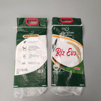 Saco de arroz tejido de laminación bopp con mango de plástico, 5kg