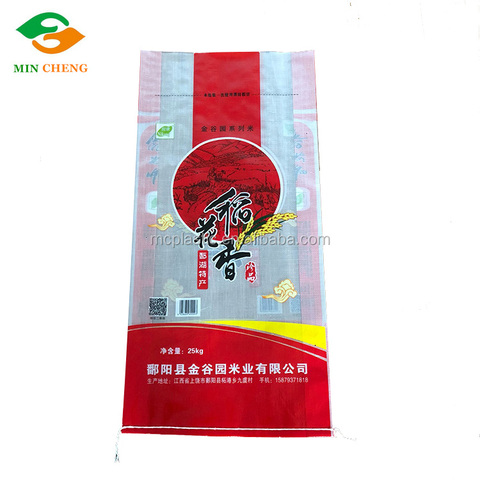 Logo Aangepaste Kleur Afdrukken Bopp Gelamineerd Flexo Afdrukken Pp Geweven Zak Zakken 25Kg Custom Rijst Zak Rijst Verpakking Zak 25Kg